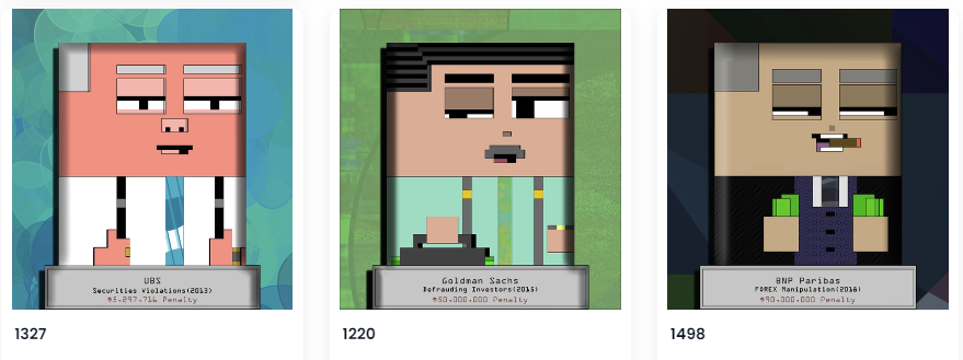 The Banksters is an NFT project that shines a light on financial crime. It’s 1500 NFTs. 1500 factual, immutable record’s of Bankster crime.